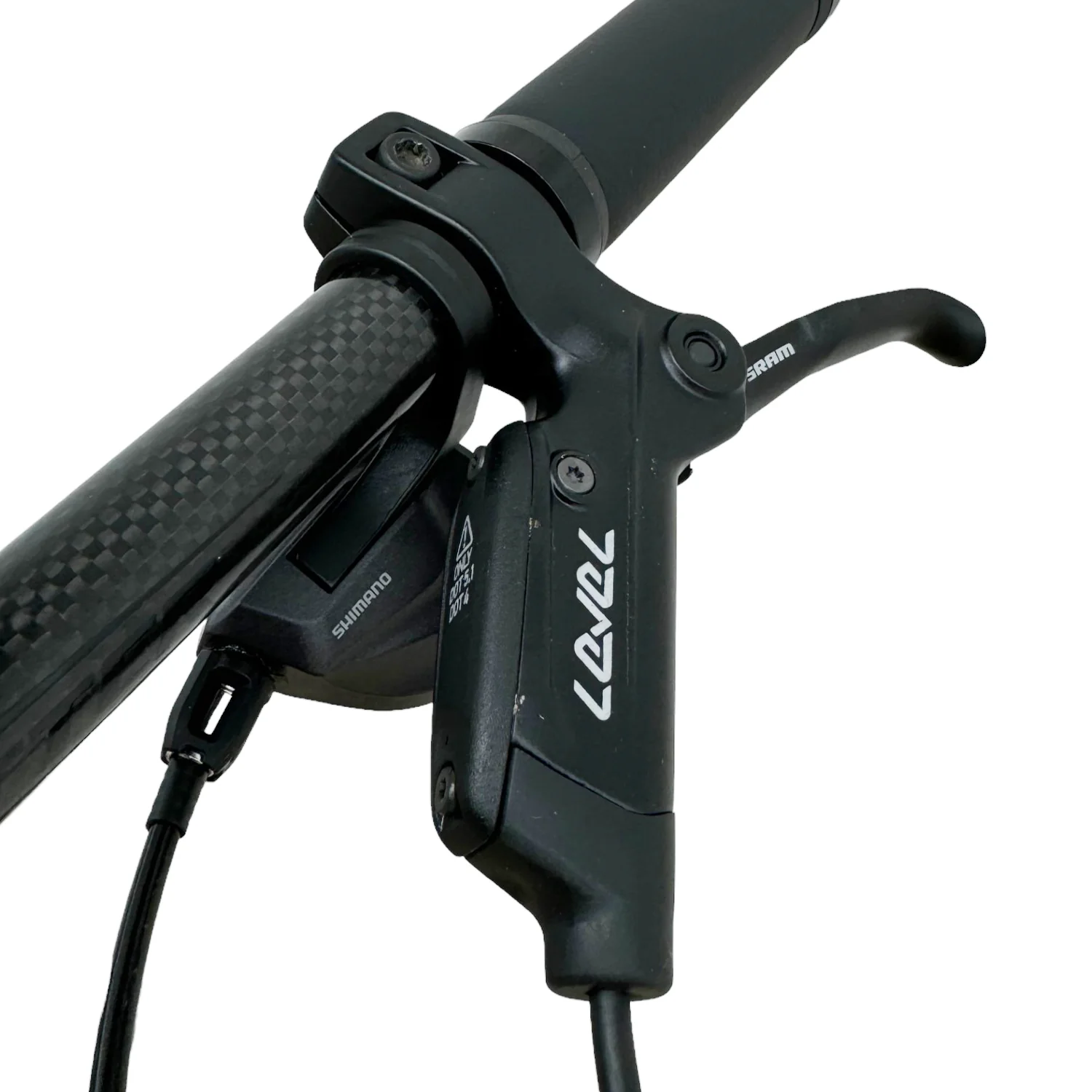 - Frenos de Disco Sram Level 12V: Frenado potente y preciso en todas las condiciones.