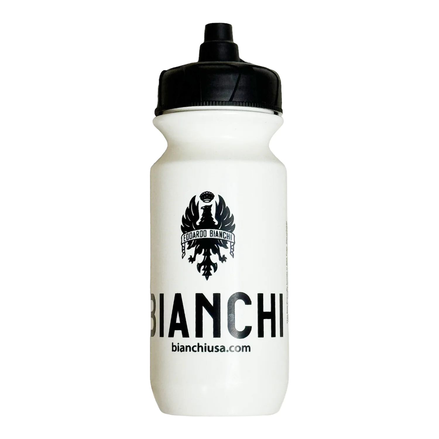 Botella Powerflow de Bianchi. La válvula unidireccional patentada se abre con un suave apretón y sella herméticamente cuando se suelta.