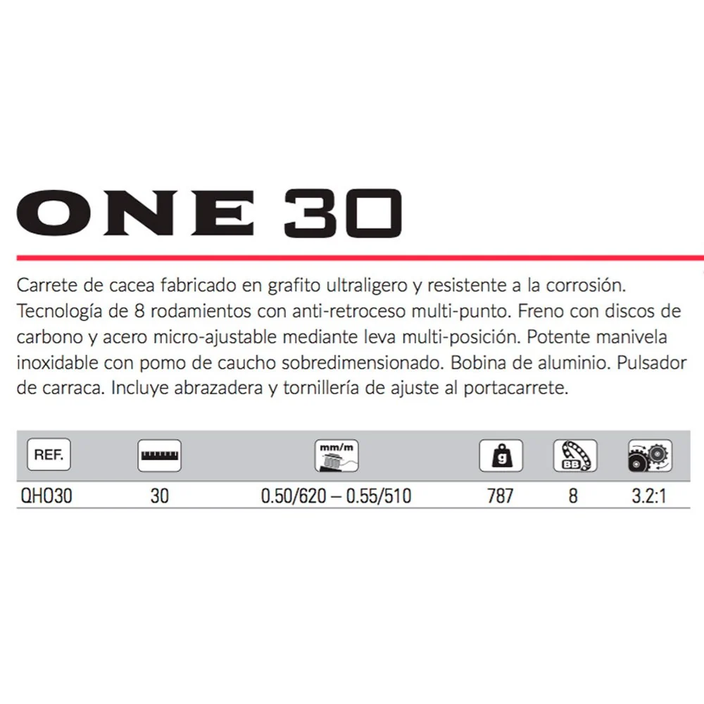 - Sistema de freno con discos de carbono y acero micro-ajustable mediante una leva multi-posición, permitiendo un control preciso de la resistencia del carrete.