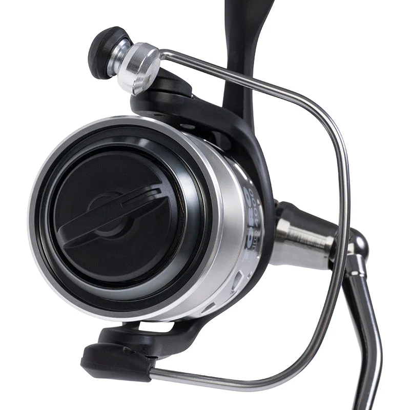 Manivela mecanizada en aluminio. Pomo de combate ergonómico de EVA. Pick-up extra grueso con guía-hilos sobredimensionado integrado.