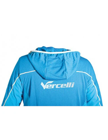 Hoodie técnico super-deportivo. Segunda capa fabricada en elástico tejido técnico. Favorece la absorción del sudor y su transporte hacia el exterior, manteniendo el cuerpo más seco y fresco, a la vez que protege del sol. Bolsillo al pecho.