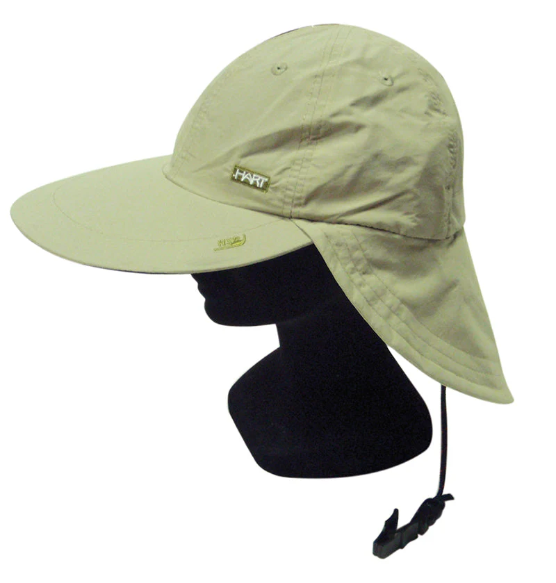 Gorra de visera con faldón de protección solar trasero. Goma de ajuste interior con clip de sujeción. Material de secado rápido y protección solar HSP.