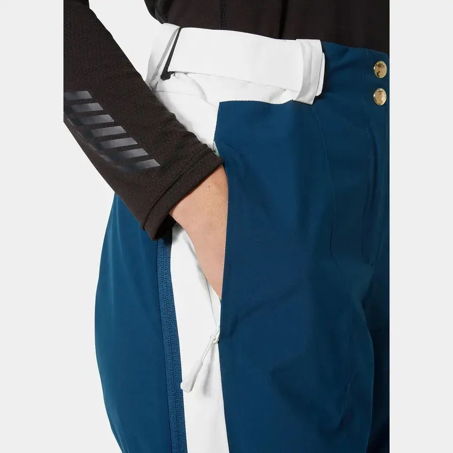 Este pantalón para mujer World Cup aislante y con cremallera completa ofrece un rendimiento y un estilo profesionales en las pistas. Con una amplia gama de características, como HELLY TECH® PROFESSIONAL para garantizar la impermeabilidad y transpirabilidad, reflectores RECCO® para facilitar la búsqueda, cremalleras completas en los laterales para ponerlo y quitarlo fácilmente cuando se lleva con un mono, bajos reforzados, cintura ajustable y aislamiento en el trasero y las rodillas, este pantalón ofrece una comodidad y protección superiores. Además, no contiene PFC y cuenta con el certificado bluesign®. Este pantalón es un básico de entrenamiento tanto para Alpine Canada como para el equipo nacional noruego de esquí alpino.