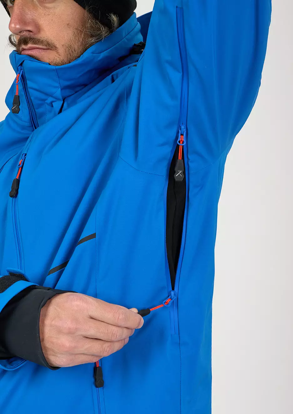 La chaqueta cuenta con una capucha desmontable que se adapta a tus necesidades y preferencias. Las amplias ventilaciones en las axilas, equipadas con cremalleras waterproof, facilitan una regulación térmica eficiente durante actividades intensas. Además, dispone de múltiples bolsillos interiores y exteriores, incluyendo un compartimento específico para el forfait, asegurando que todos tus elementos esenciales estén siempre al alcance.