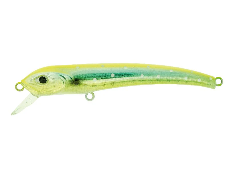 Jerkbait de 6,5 cm. y 4 gr. Utilizable en agua dulce y en mar. Mantiene una buena configuración en corrientes para tentar truchas en aguas movidas, y en mar, para el curricán costero. El tamaño y el peso no afectan el lanzamiento. Adaptado para una recuperación ordenada, reacciona perfectamente a decididos jerks o tirones. El modelo “slow sinking” muestra su propia característica en recuperaciones con paradas stop & go. También eficaz para Cacho, Perca y Black Bass. Muy eficaz en el mar para el Rockfishing y Light Spinning.
