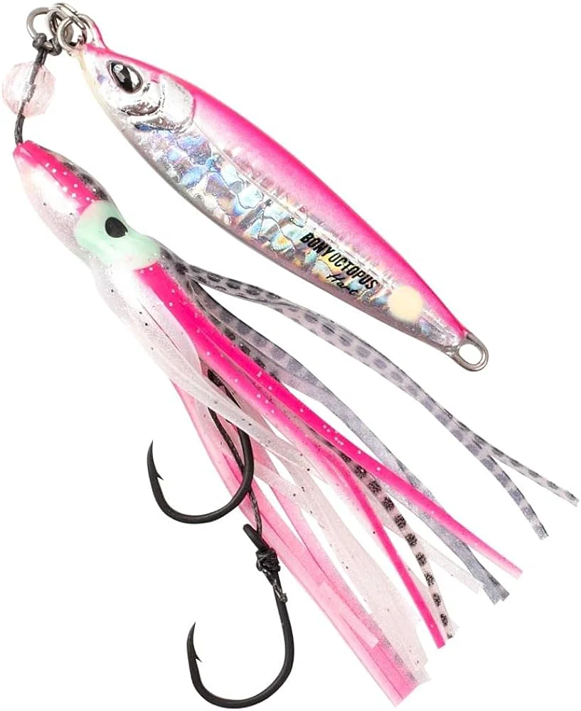 Esta vez hemos convertido la Bony en un inchiku jig ligero. Monta un octopus delantero con un doble assist hook que aumenta su poder de atracción. Podemos usarla tanto en vertical para jigging ligero como al lanzado. Una auténtica máquina de pescar.