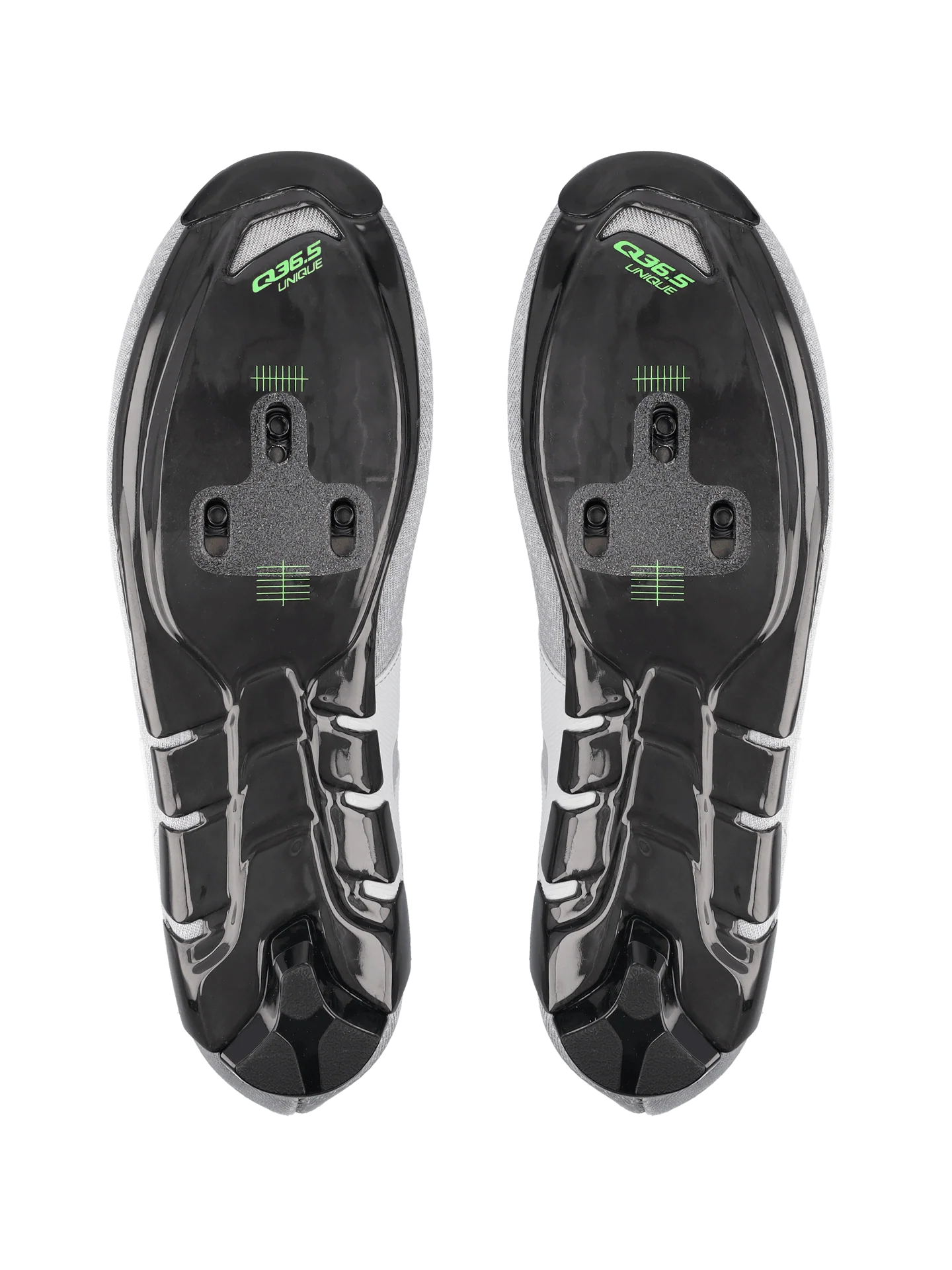 Las zapatillas ciclistas Q36.5 Clima Road cuentan con una estructura súper transpirable que aporta una sujeción esencial en los intensos esfuerzos en días de calor. Aportan un equilibrio perfecto entre comodidad y alto rendimiento, el empeine especial y la horma personalizada envuelven el pie como si fuera un calcetín, con el objetivo de aprovechar toda la potencia ejercida durante el pedaleo.