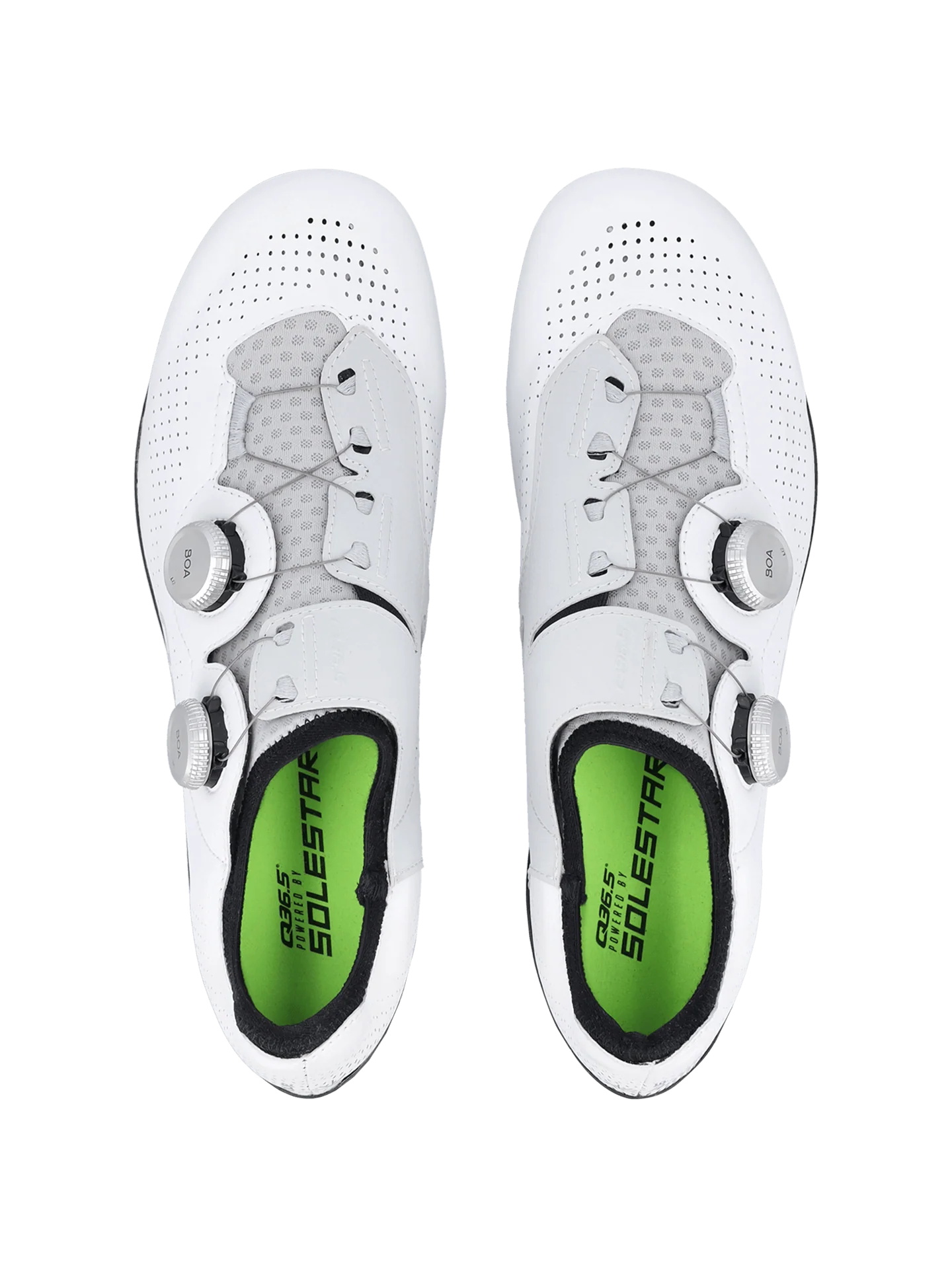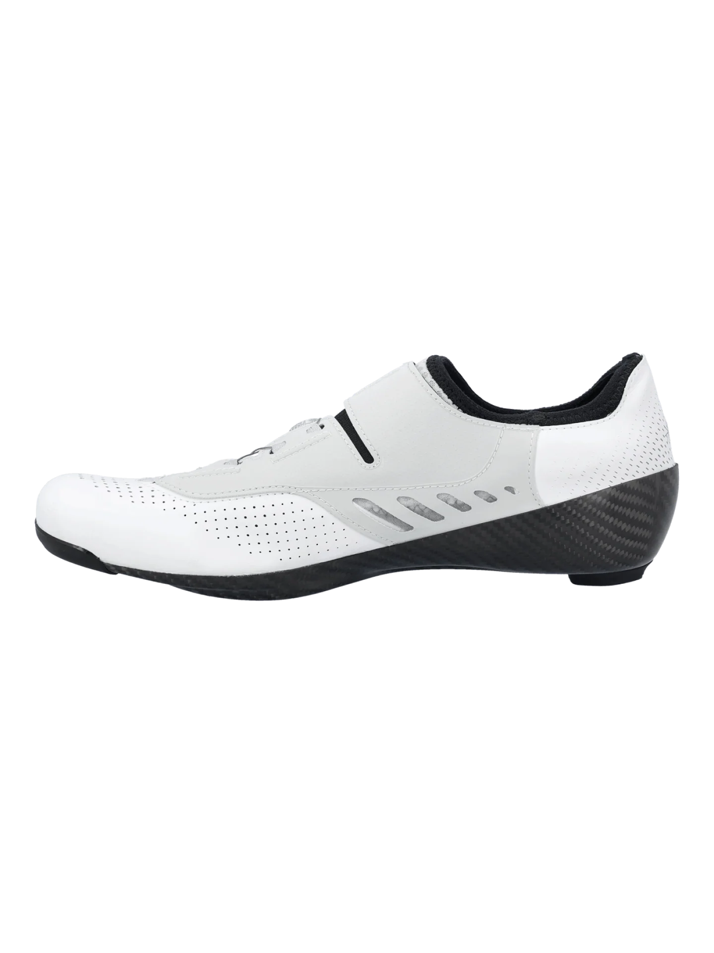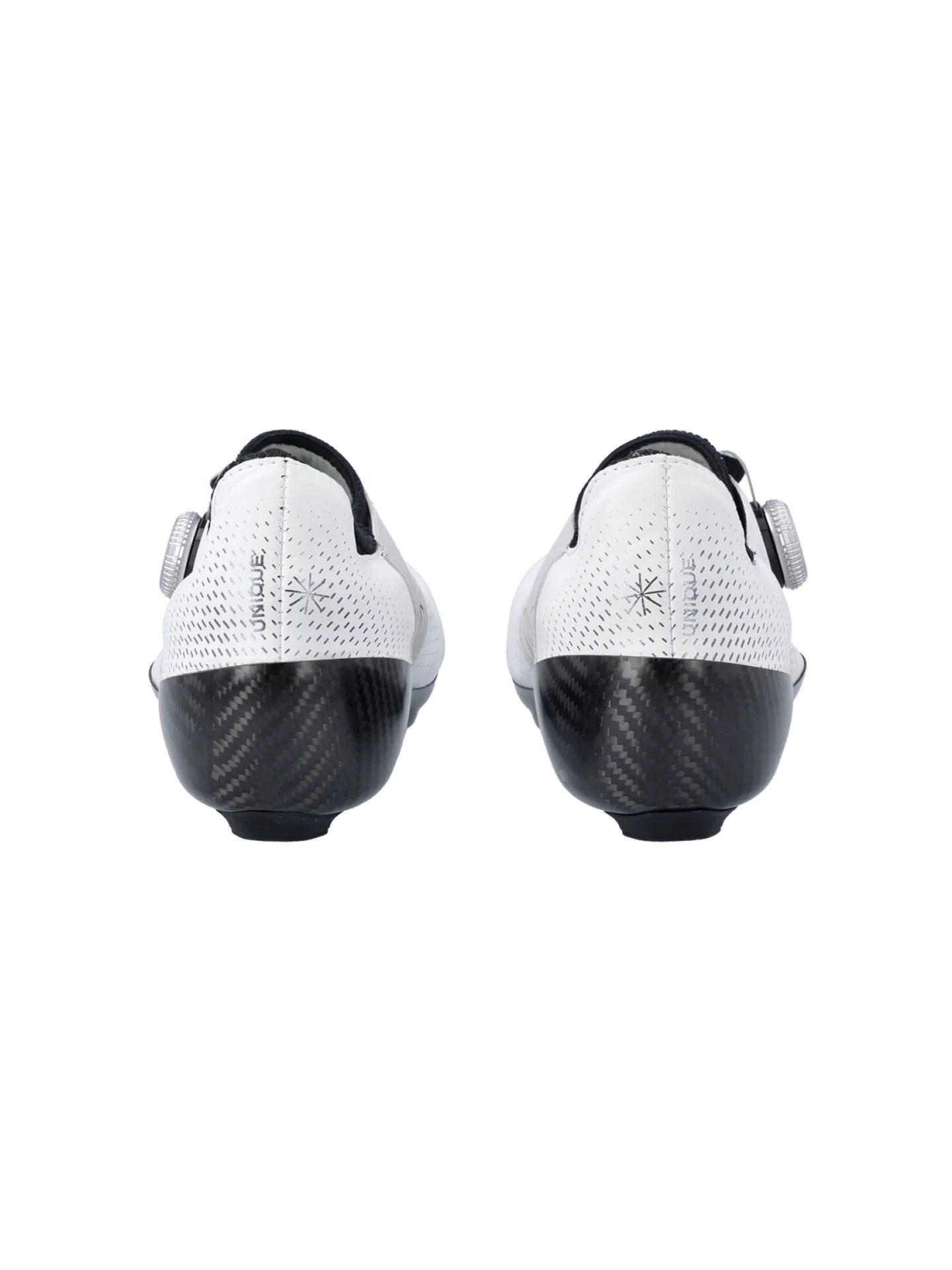 Diseñadas para un control total, las Q36.5 Unique Pro utilizan tecnologías de fabricación italianas patentadas para lograr un nuevo nivel de estabilidad, potencia y comodidad para los ciclistas. Para que alcancen sus límites con un renovado nivel de confianza. En el centro de este rendimiento superior se encuentra su grosor de 4,4 mm, líder en el mercado. La suela de fibra de carbono artesanal se ha fabricado en Montebelluna (Italia) utilizando un laminado pendiente de patente. La suela exterior también cuenta con un área metatarsiana extra ancha para garantizar la comodidad en diferentes tipos de pie y un talón ahuecado para una mayor estabilidad. Una característica distintiva de todas las zapatillas Q36.5 es que no tienen lengüeta, sino que utilizan un panel de malla patentado en el puente del pie para maximizar la refrigeración. Ninguna otra zapatilla del mercado ofrece una superficie de ventilación tan grande y eficaz, lo que representa un ejemplo más de nuestro compromiso con la termorregulación; la nueva frontera para mejorar el rendimiento, así como la comodidad y salud del ciclista.